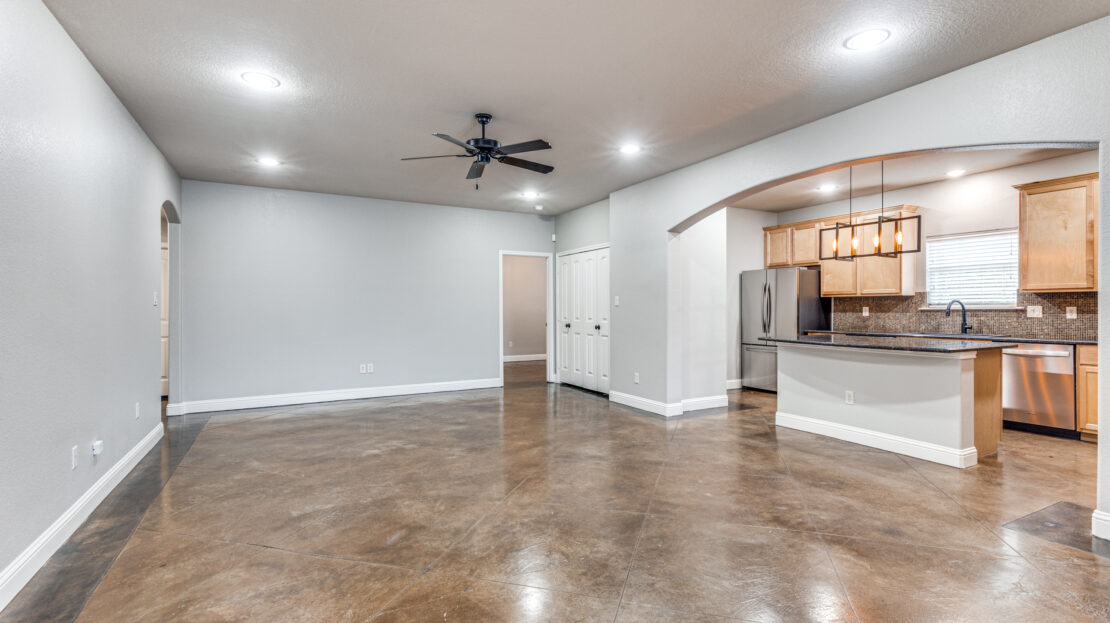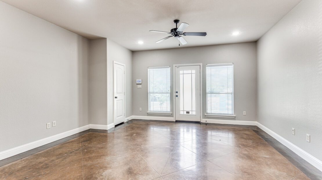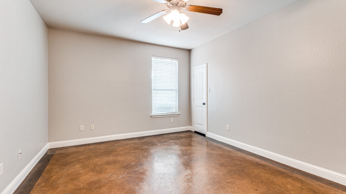 DESCRIPTION:Fabulous ground-floor unit in duplex. Walking distance to TCU. Across the street from St. Stephens church. Open floorplan between kitchen, dining room, and living room. Common areas and bedrooms feature stained concrete floors. Kitchen includes island, granite countertops, stainless steel appliances. Large bedrooms with walk in closets.