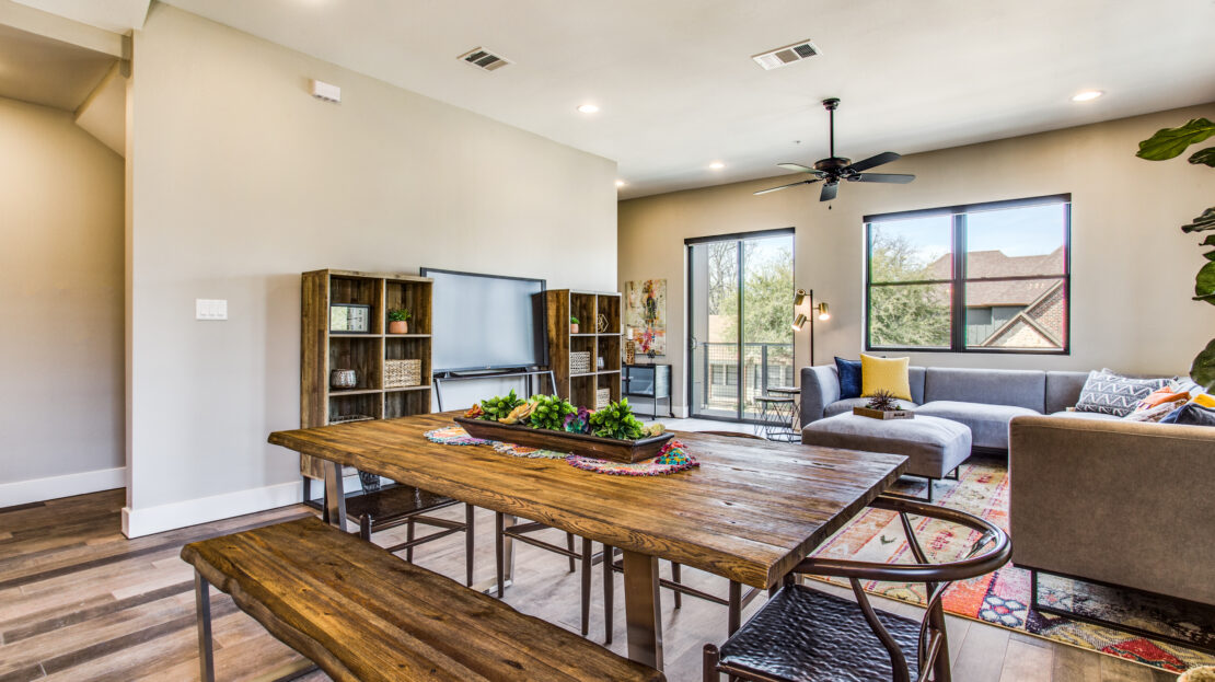 All bedrooms include a walk-in closet, separate bathroom, and on-site reserved parking spot at no charge — so hard to find around TCU! Kitchen includes a large island, perfect for entertaining friends. Full-size, energy-efficient stainless steel appliances provided.