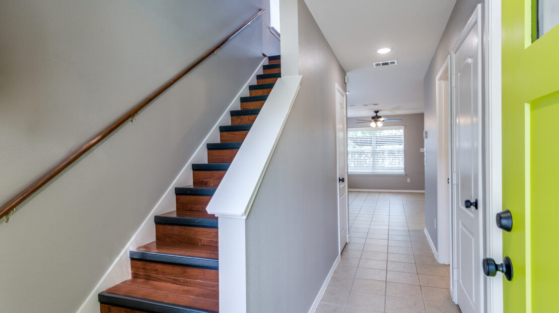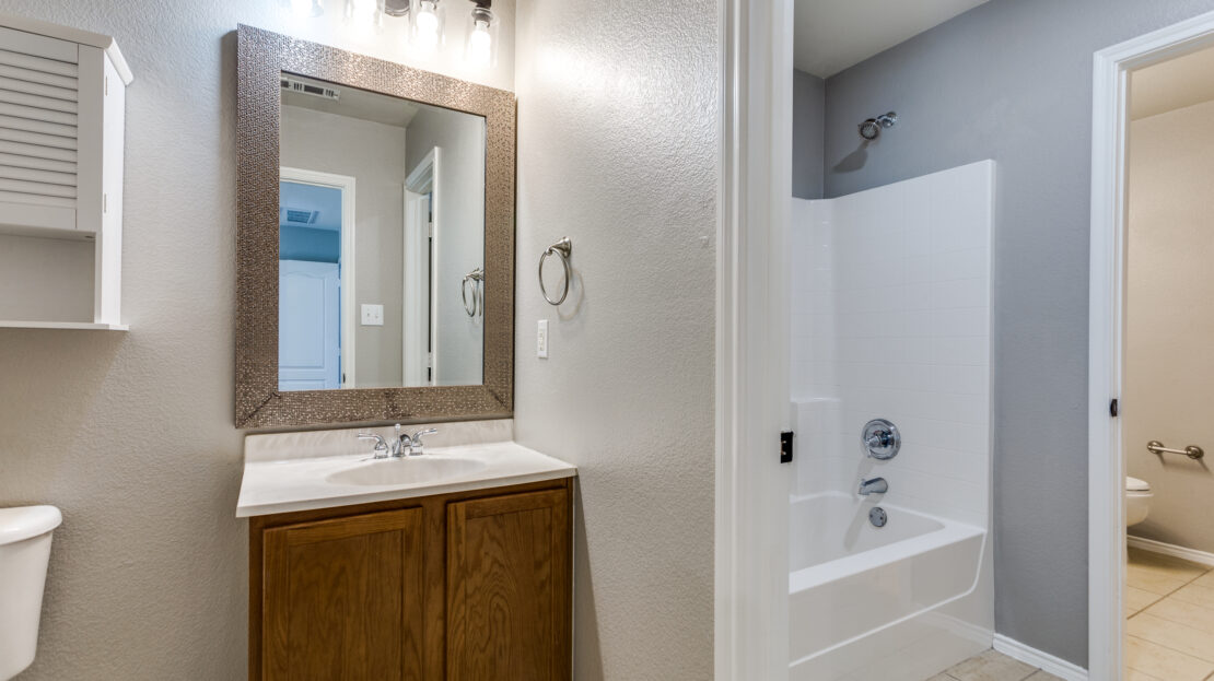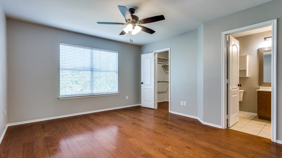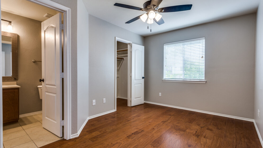 Common areas have tile, with bedrooms featuring hardwood floors and LARGE walk-in closets. All baths have separate vanities. Fenced back yard. Yard maintenance included. 2 covered parking spots, 1 partially covered parking spot.
