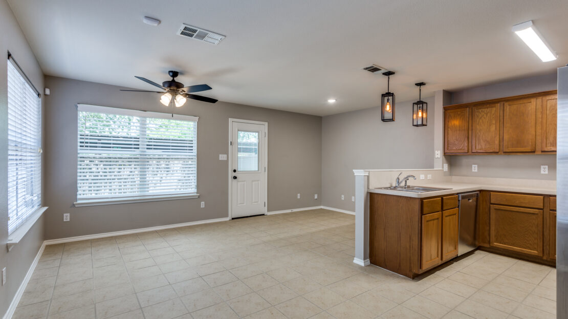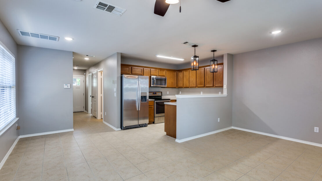DESCRIPTION: Two blocks from TCU! Quaint duplex. Kitchen features breakfast bar, that opens to living room and dining room, stainless steel appliances and full size refrigerator with ice maker.