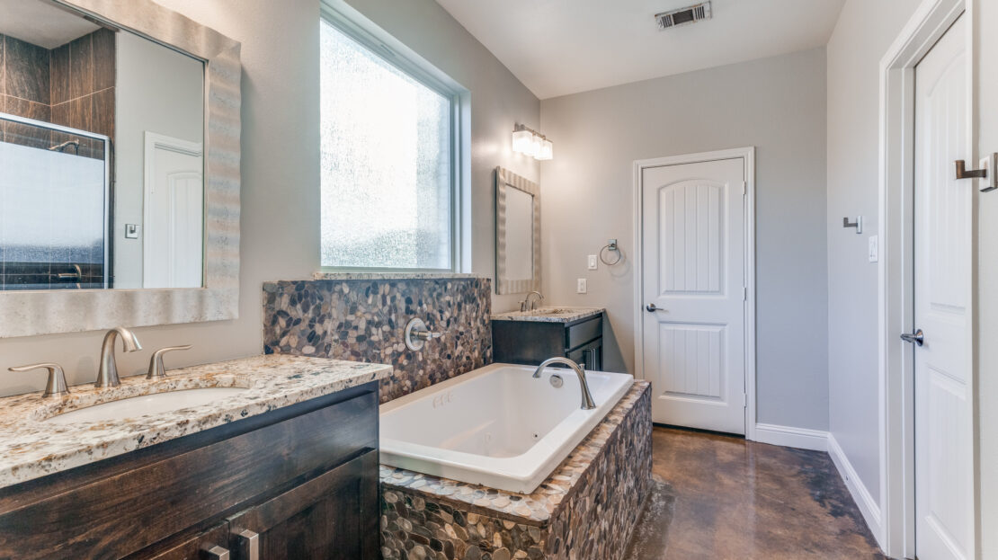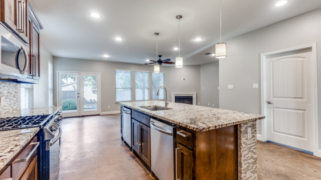 DESCRIPTION: Fabulous mediterranean single family house 1 block from campus. Master downstairs with stained concrete floors, dual shower heads and jacuzzi tub. Upstairs boasts 4 bedrooms and game room, with acacia walnut hand scraped wood floors. All baths provide separate vanities, jacuzzi tubs. Large walk-in closets in every room. Large island kitchen with breakfast bar, wine bar, decorative lighting, gas range, separate refrigerator/freezer and dual dishwashers. Lawn care provided.
